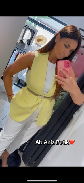 Kamizelka bez rozmiaru w intensywnym kolorze żółtym. Pasuje od rozmiaru S do L.
