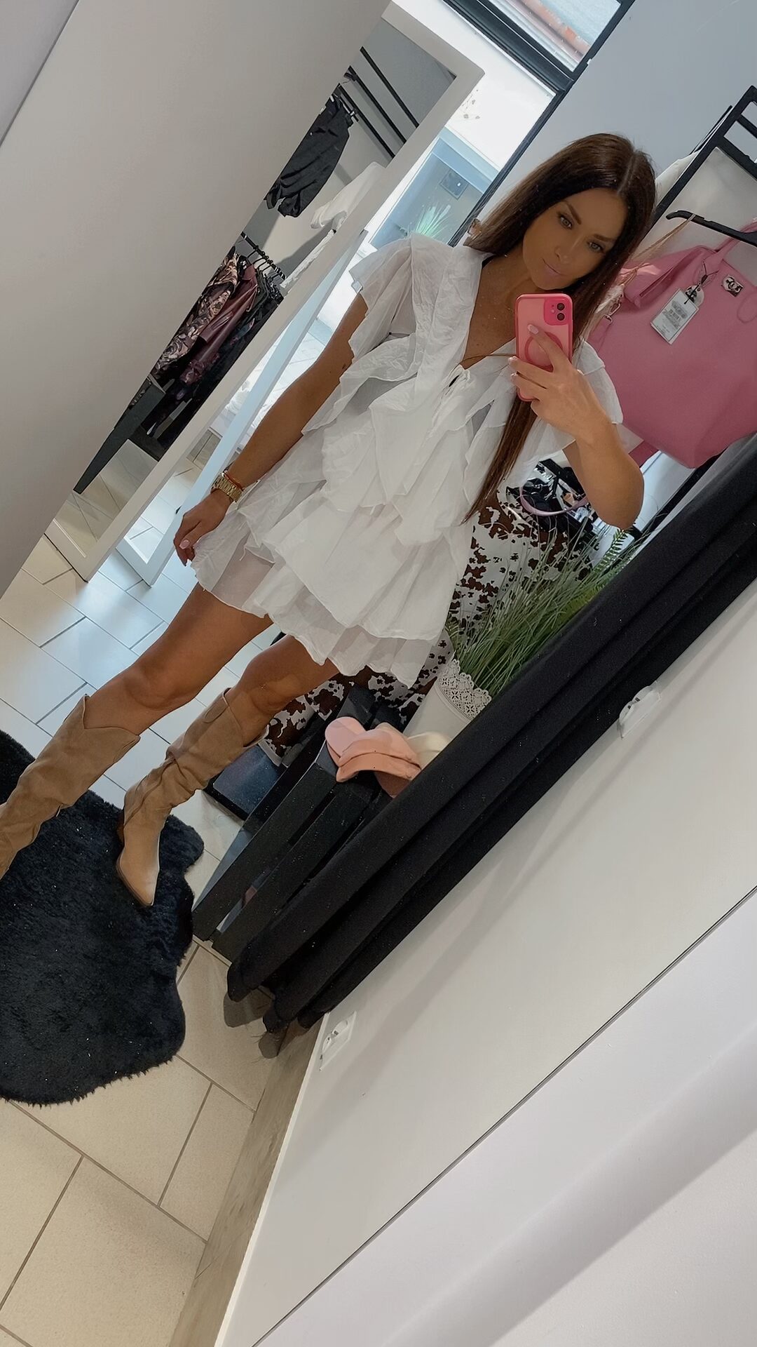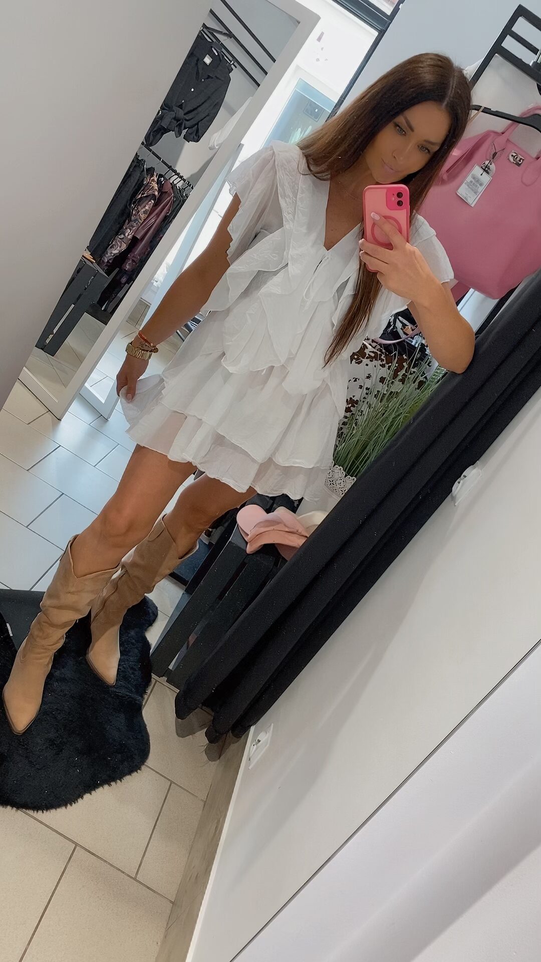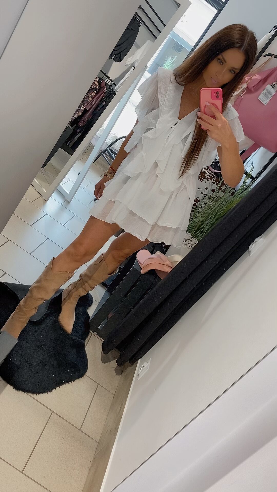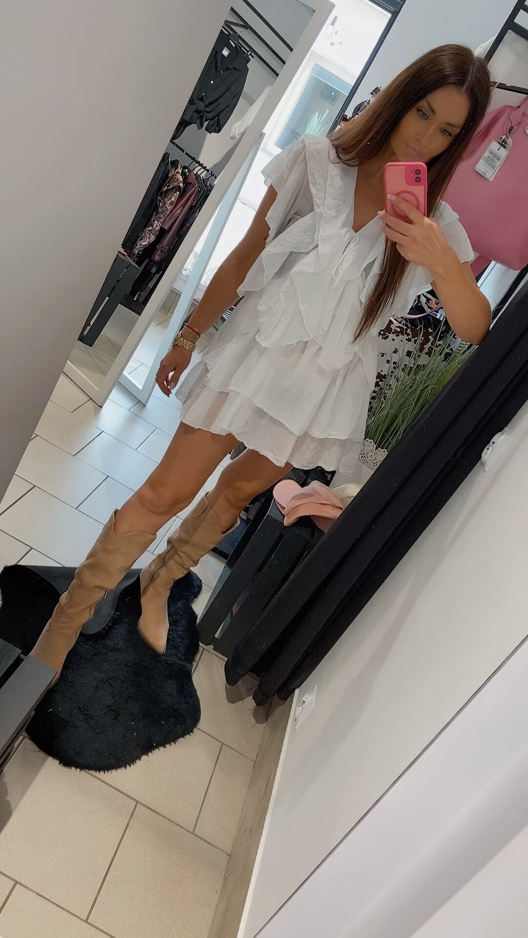Zjawiskowa sukienka typu mgiełka w klasycznym kolorze bieli, to propozycja dla kobiet ceniących sobie lekkość, kobiecość i wygodę. Uszyta z delikatnego zwiewnego materiału pięknie pracuje w ruchu i podkreśla sylwetkę. Model posiada falbany, które nadają wyjątkowego uroku i subtelnie maskują niedoskonałości figury. Dekolt regulowany troczkiem z wiązaniem. Sukienka nie posiada rozmiaru – pasuje na XS, S, M, L, w zależności od preferencji noszenia – luźniej lub bardziej dopasowana. Dodaj pasek, ulubione klapki lub kozaki – i stylizacja gotowa.